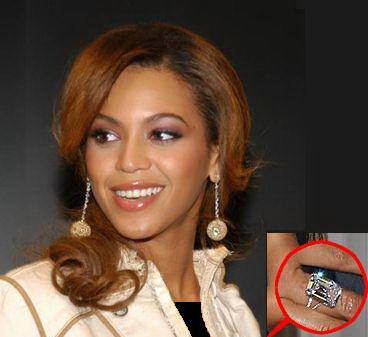 Penyanyi Beyonce Knowles menerima berlian menakjubkan tanpa cacat 18-karat ditempatkan dalam platinum, saat ini bernilai lebih dari $ 5 juta.Dirancang oleh Lorraine Schwartz, cincin ini merupakan salah satu dari jenis yang telah diasuransikan atas jumlah yang sama.Perancang yang sama telah menciptakan rancangan untuk Christina Aguilera, Jessica Simpson dan Jennifer Lopez. Namun Beyonce, juga memiliki cincin imitasi seharga $ 5.000 yang dia pakai di publik, untuk keselamatan.